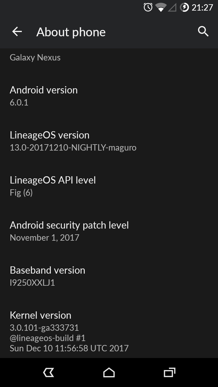 這支 2011 年上市的 Galaxy Nexus 手機,是我今年夏初購入的二手貨。它本身是 google 的親兒子,效能與規格在當時皆為一時之選,即便在六年之後此等規格仍然大大符合我個人的使用需求與偏好(尤其無法接受螢幕 5 吋以上的手機),且原手機機主保存的機況還算不錯,自己僅用了一千元入手。記得當時此機並未 root,也維持在 Samsung 最後更新的版本 – Android 4.3。