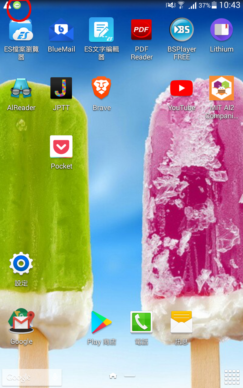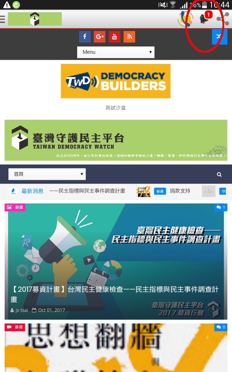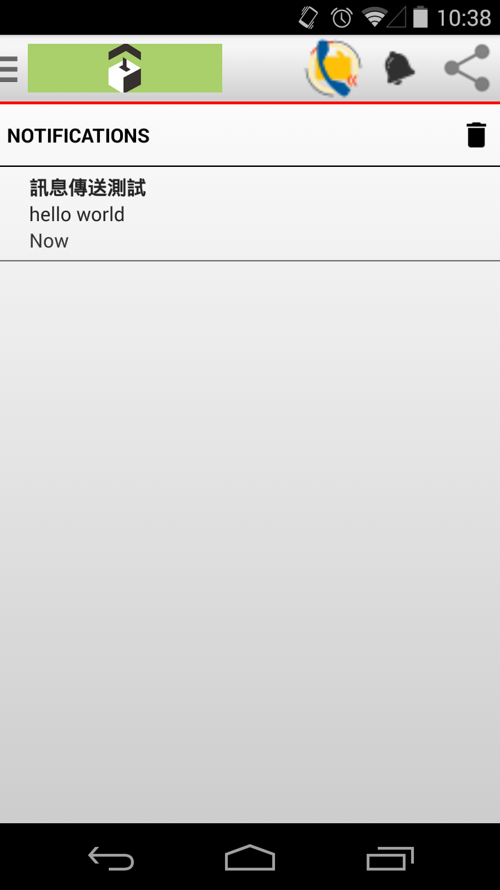 管理者在網頁端按送出後,用戶手機端收到通知訊息的狀況,左上出現一個新訊息小圖示(此小圖示可以更改樣式)