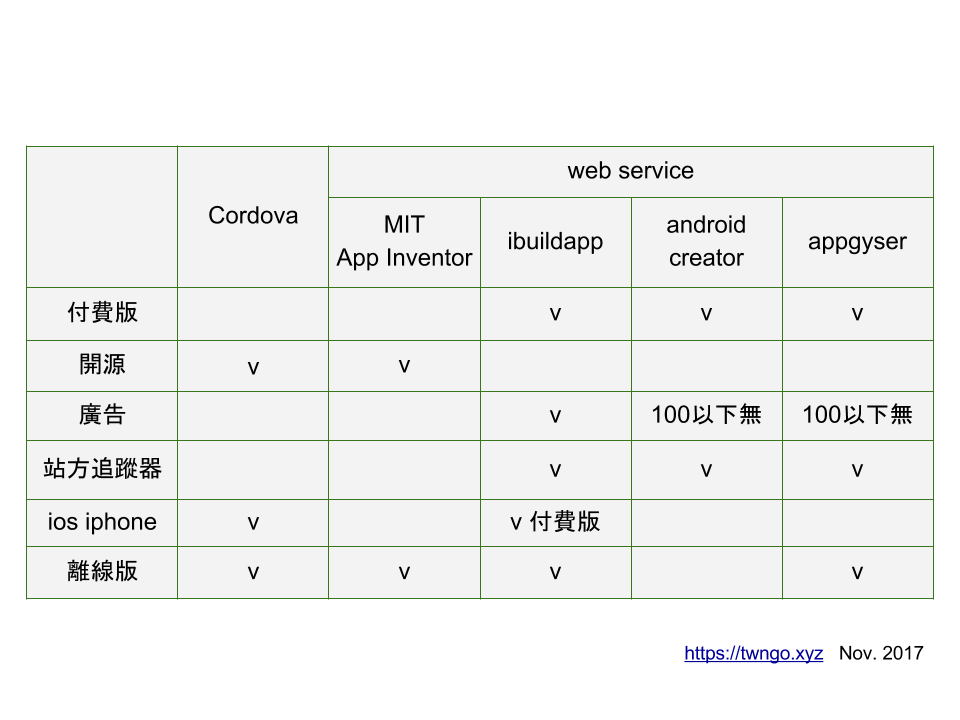 - 網路上「免費」快速的手機應用軟體打造網站,如 ibuildapp, appsgeyser, androidcreator 等等。